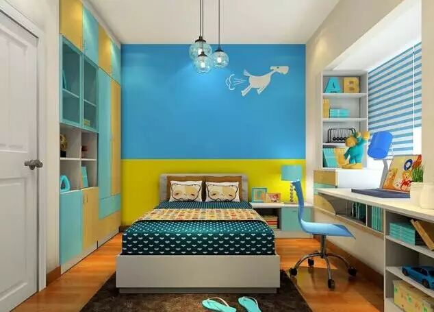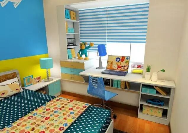 處於這個階段的孩子,比較好動,對周圍事物充滿了好奇。所以,在設計兒童房時,應注意孩子的安全性,並添加有啟蒙作用的彩色圖案。